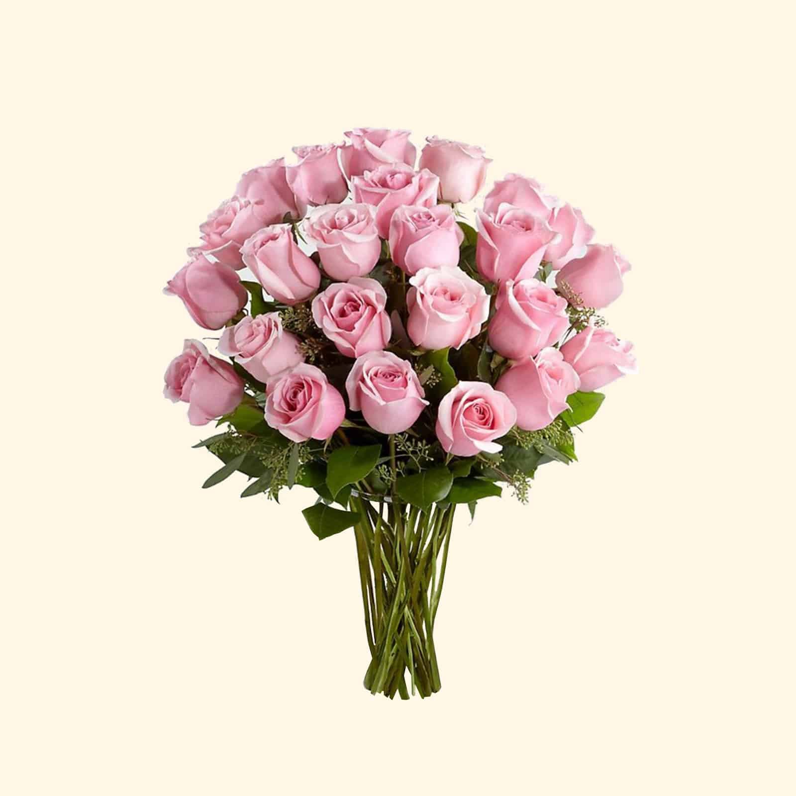 Bouquet di 20 Rose rosa con verde decorativo. Il rosa è il colore della femminilità per eccellenza: per questa ragione, questo mazzo di fiori rosa si presta ad essere donato a un’amica, alla mamma, a una neo-mamma, alla collega o all’amata in occasione di un compleanno, un anniversario o una felicitazione speciale dopo tanti anni di conoscenza e vicinanza.