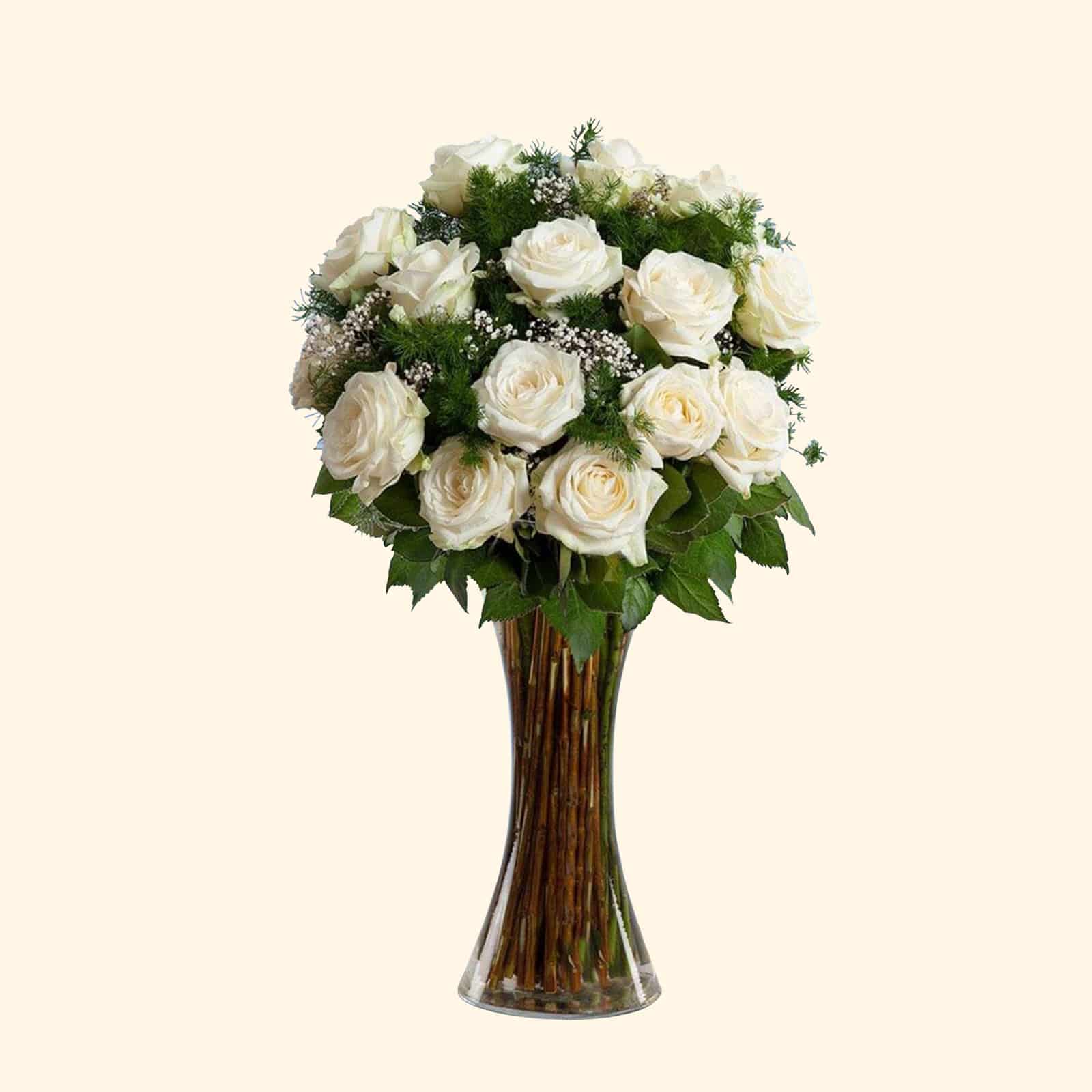 Bouquet composto da 30 Rose bianche con verde decorativo.
