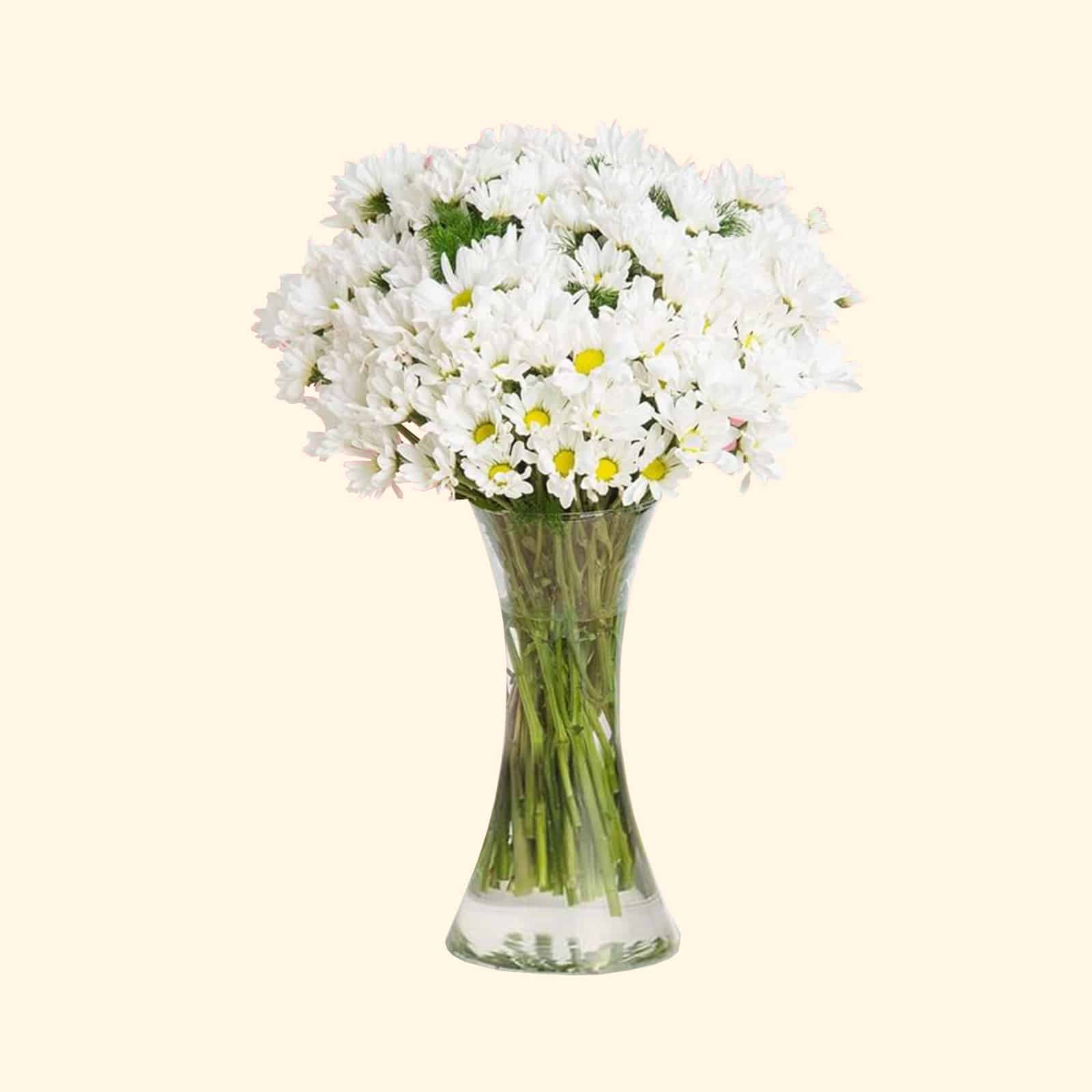 Sprigiona buonumore e gioia di vivere, questo bouquet di margherite, e ha il potere di ravvivare qualsiasi animo e qualunque angolo di casa con i suoi fiori delicati. Un regalo perfetto per la mamma, per i figli che compiono gli anni o si sono laureati, per l’amica del cuore e per tutte le persone a cui vogliamo dire: Ti voglio bene.