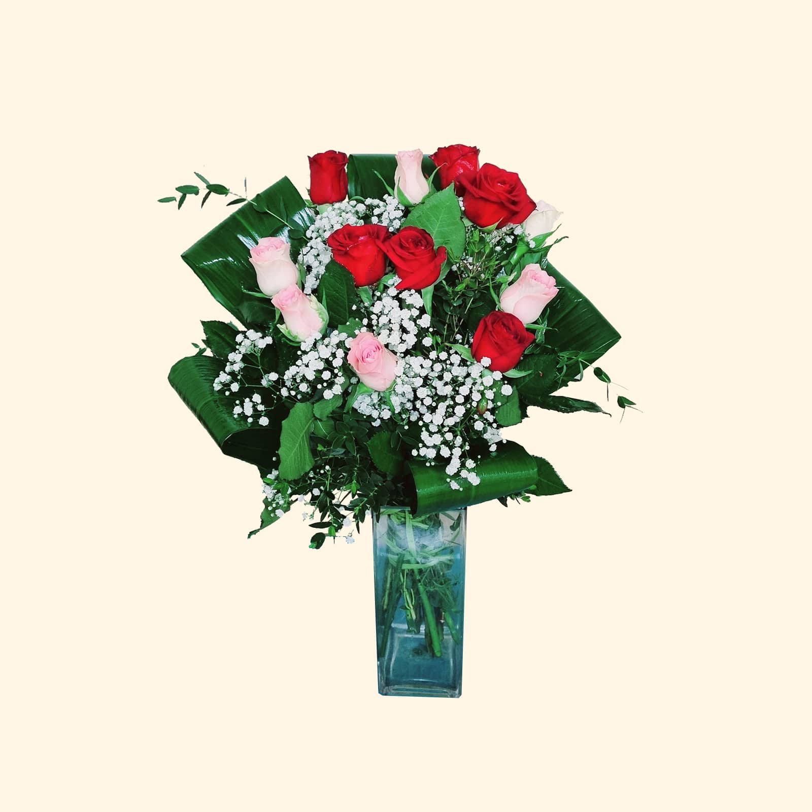 Questo Bouquet è una composizione vibrante di 6 rose rosse e 6 rose rosa che si uniscono in un matrimonio d’amore di gusto ed eleganza.