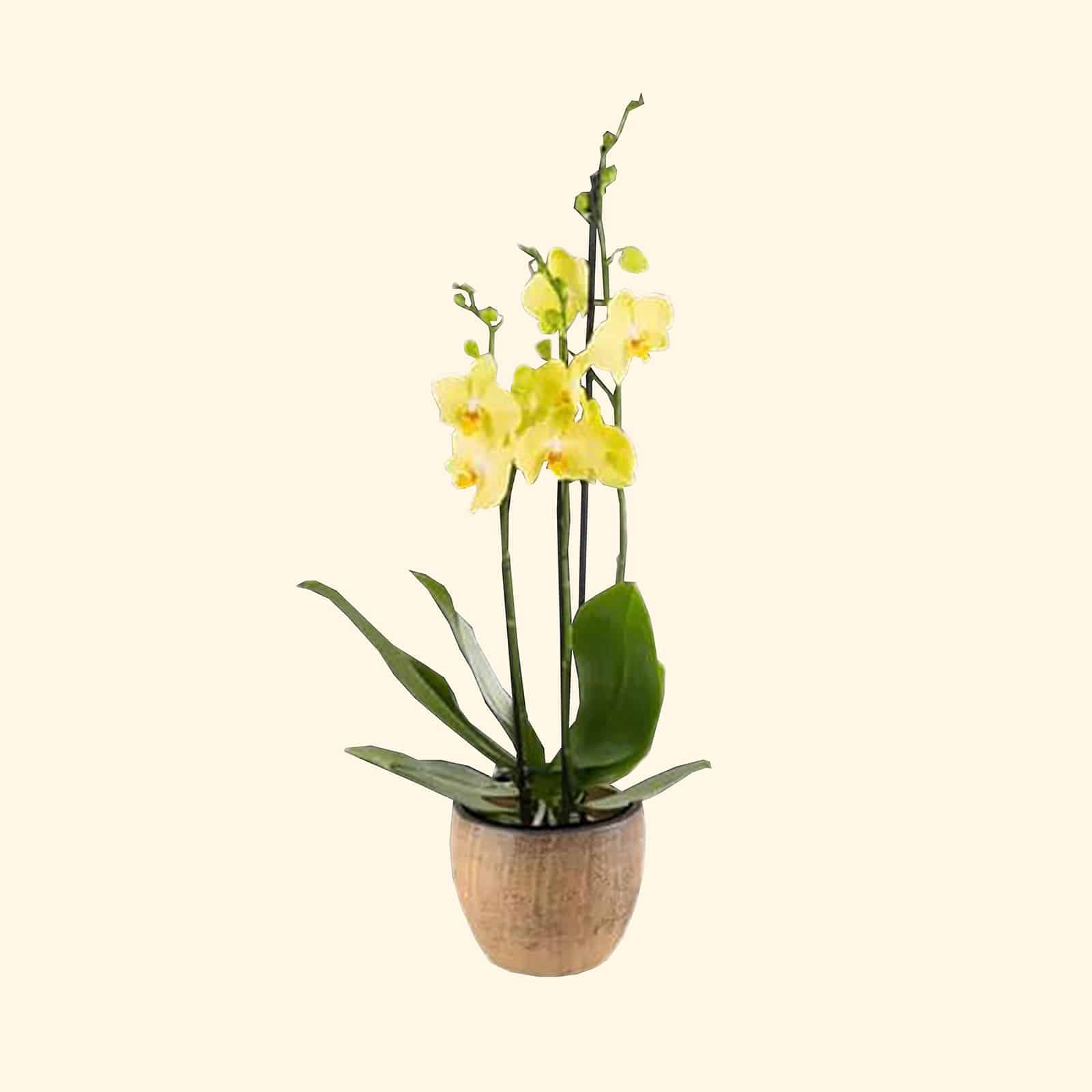 Orchidea Phalaenopsis gialla,  2 splendidi Rami in un vivace ed allegro colore. L’orchidea è una Pianta tropicale con grandi Fiori a forma di farfalla e hanno i fiori più belli di tutto il Regno vegetale.